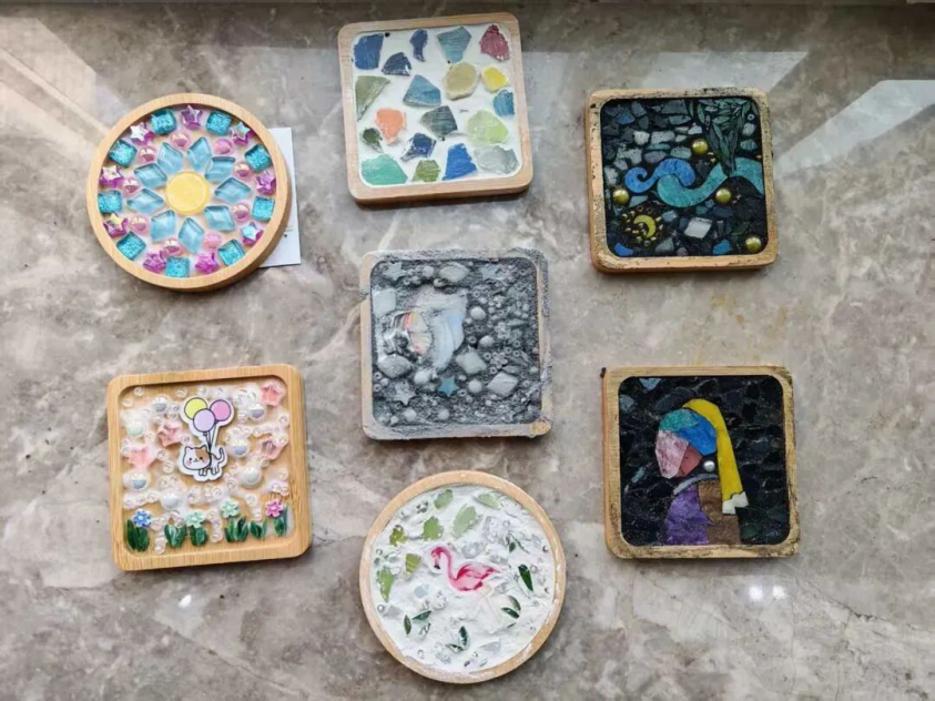 彩虹心理协会精心准备了30余个马赛克杯垫材料包,涵盖约十种不同图案,并为参与同学配备了专用胶水、填缝剂及全套辅助工具。在成人app
