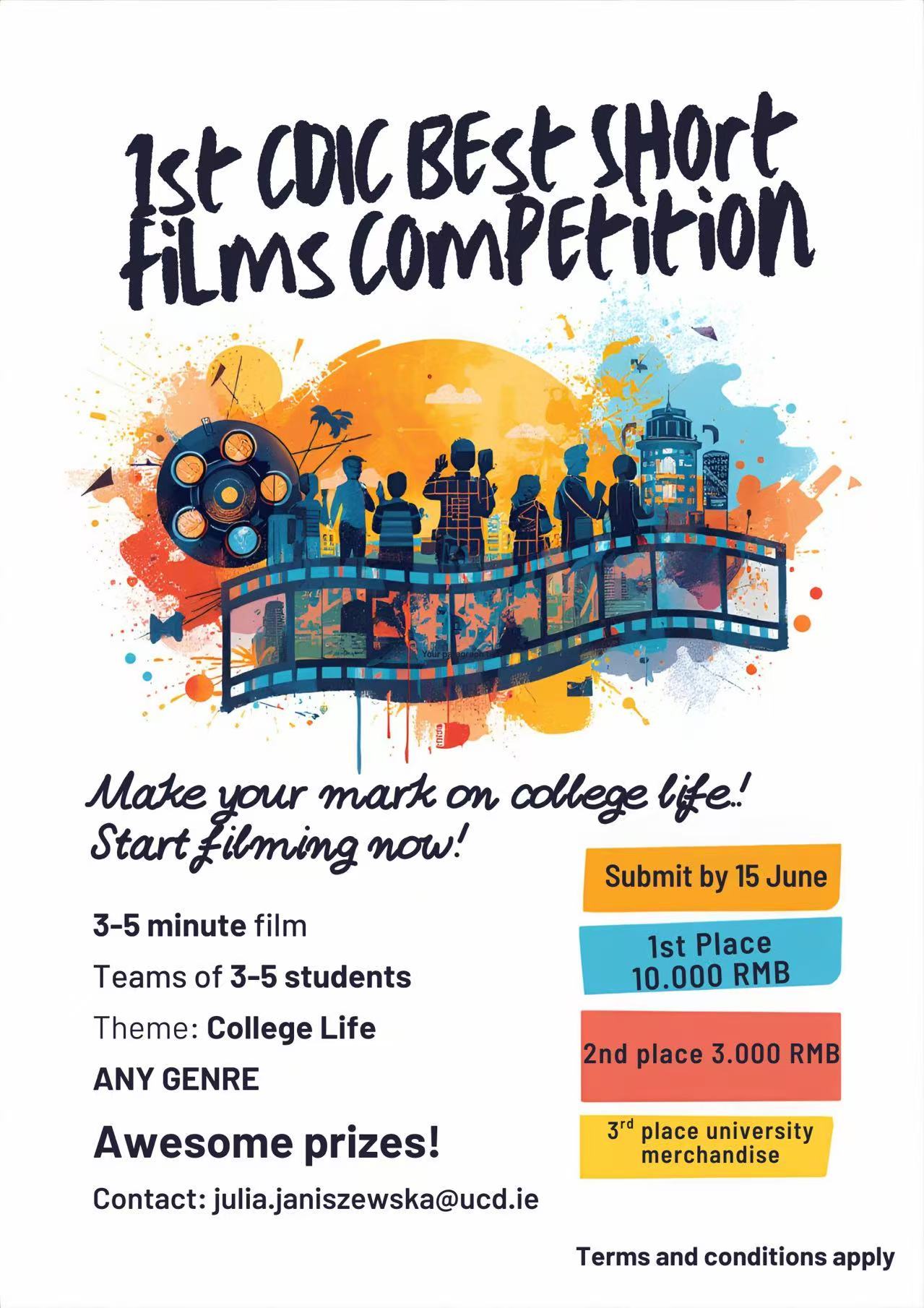 欢迎全体同学积极组队报名,用镜头定格校园时光,用创意诠释青春内涵,用影像讲好属于CDIC学子的青春故事!